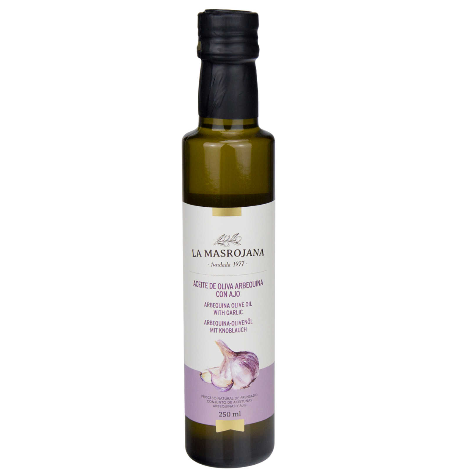 La Masrojana küüslauguga maitsestatud Arbequina oliiviõli on valmistatud külmpressimise teel, pressides õli ja küüslauk koos, et säilitada mõlema naturaalne aroom ja maitserikkus. Tulemuseks on õli, mis on pehme, värske ja kergelt puuviljane ja mida täiendab õrn ja aromaatne küüslaugunoot.